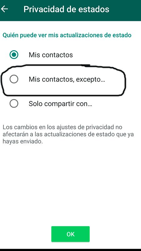 Hasta ahora, los usuarios tenían tres opciones de privacidad para elegir para decidir quién podía ver su foto de perfil, información y estado visto por última vez. Las opciones eran: todos, mis contactos y nadie. Ahora, hay una cuarta opción titulada "Mis contactos excepto..." Con esta nueva opción, puede excluir a personas específicas de sus contactos para que no vean su foto de perfil, información y estado visto por última vez. Vale la pena señalar que si elige ocultar su estado de Último visto de los demás, tampoco podrá ver el de ellos.